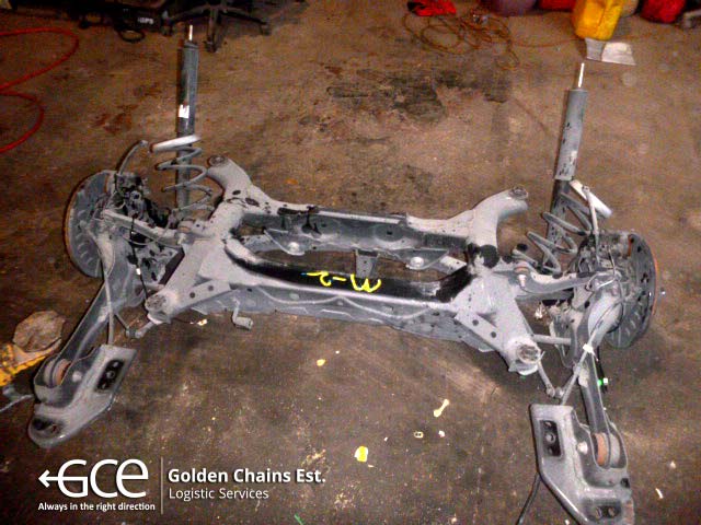 Rear part will be dissembled, if it contains undamaged body parts (rear window, lights and ….. Whole rear suspension is taken off separately (if not damaged).